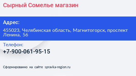 Сырный Сомелье, магазин по адресу 455023, Челябинская область, Магнитогорск, проспект Ленина, 56 в дальнейшем Организация, размещена в следующих категориях: