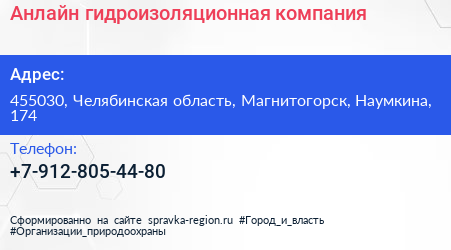 Анлайн, гидроизоляционная компания по адресу 455030, Челябинская область, Магнитогорск, Наумкина, 174 в дальнейшем Организация, размещена в следующих категориях:
