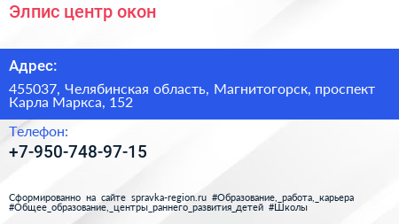 Элпис, центр окон по адресу 455037, Челябинская область, Магнитогорск, проспект Карла Маркса, 152 в дальнейшем Организация, размещена в следующих категориях: