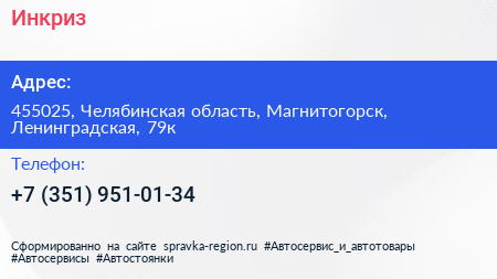 Инкриз по адресу 455025, Челябинская область, Магнитогорск, Ленинградская, 79к в дальнейшем Организация, размещена в следующих категориях: