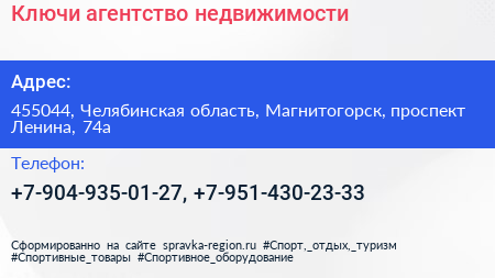 Ключи, агентство недвижимости по адресу 455044, Челябинская область, Магнитогорск, проспект Ленина, 74а в дальнейшем Организация, размещена в следующих категориях: