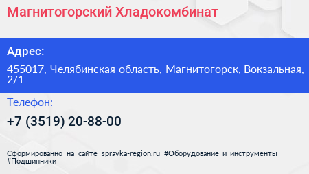 Магнитогорский Хладокомбинат по адресу 455017, Челябинская область, Магнитогорск, Вокзальная, 2/1 в дальнейшем Организация, размещена в следующих категориях: