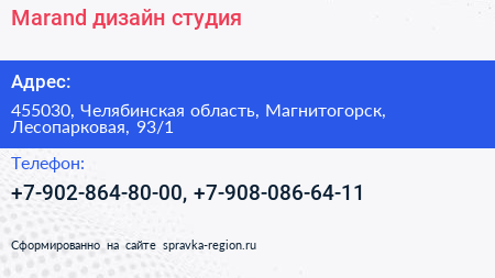 Marand, дизайн-студия по адресу 455030, Челябинская область, Магнитогорск, Лесопарковая, 93/1 в дальнейшем Организация, размещена в следующих категориях: