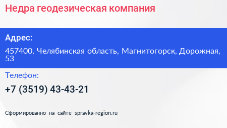 Недра, геодезическая компания по адресу 457400, Челябинская область, Магнитогорск, Дорожная, 53 в дальнейшем Организация, размещена в следующих категориях: