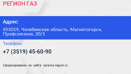 РЕГИОН-ГАЗ по адресу 455019, Челябинская область, Магнитогорск, Профсоюзная, 20/1 в дальнейшем Организация, размещена в следующих категориях: