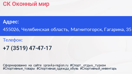 СК Оконный мир по адресу 455026, Челябинская область, Магнитогорск, Гагарина, 35 в дальнейшем Организация, размещена в следующих категориях: