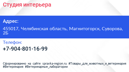 Студия интерьера по адресу 455017, Челябинская область, Магнитогорск, Суворова, 2Б в дальнейшем Организация, размещена в следующих категориях: