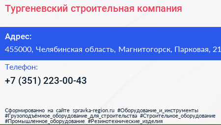 Тургеневский, строительная компания по адресу 455000, Челябинская область, Магнитогорск, Парковая, 21 в дальнейшем Организация, размещена в следующих категориях: