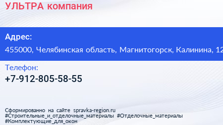 УЛЬТРА, компания по адресу 455000, Челябинская область, Магнитогорск, Калинина, 12 в дальнейшем Организация, размещена в следующих категориях: