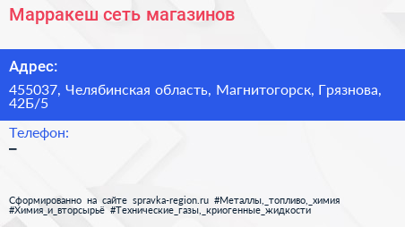 Марракеш, сеть магазинов по адресу 455037, Челябинская область, Магнитогорск, Грязнова, 42Б/5 в дальнейшем Организация, размещена в следующих категориях: