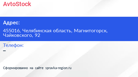 AvtoStock по адресу 455016, Челябинская область, Магнитогорск, Чайковского, 92 в дальнейшем Организация, размещена в следующих категориях: