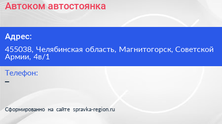 Автоком, автостоянка по адресу 455038, Челябинская область, Магнитогорск, Советской Армии, 4в/1 в дальнейшем Организация, размещена в следующих категориях: