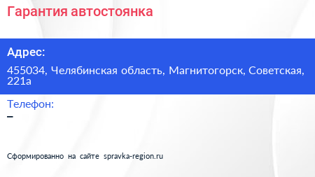 Гарантия, автостоянка по адресу 455034, Челябинская область, Магнитогорск, Советская, 221а в дальнейшем Организация, размещена в следующих категориях: