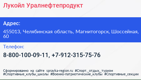 Лукойл-Уралнефтепродукт по адресу 455013, Челябинская область, Магнитогорск, Шоссейная, 60 в дальнейшем Организация, размещена в следующих категориях: