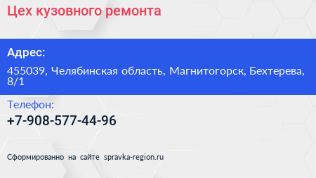 Цех кузовного ремонта по адресу 455039, Челябинская область, Магнитогорск, Бехтерева, 8/1 в дальнейшем Организация, размещена в следующих категориях: