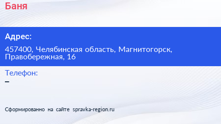 Баня по адресу 457400, Челябинская область, Магнитогорск, Правобережная, 16 в дальнейшем Организация, размещена в следующих категориях: