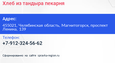 Хлеб из тандыра, пекарня по адресу 455021, Челябинская область, Магнитогорск, проспект Ленина, 139 в дальнейшем Организация, размещена в следующих категориях: