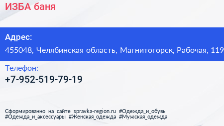 ИЗБА, баня по адресу 455048, Челябинская область, Магнитогорск, Рабочая, 119 в дальнейшем Организация, размещена в следующих категориях: