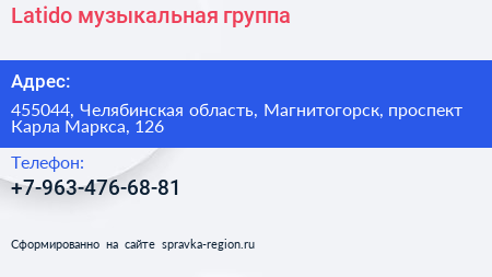 Latido, музыкальная группа по адресу 455044, Челябинская область, Магнитогорск, проспект Карла Маркса, 126 в дальнейшем Организация, размещена в следующих категориях: