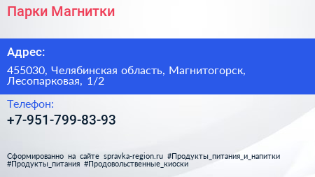 Парки Магнитки по адресу 455030, Челябинская область, Магнитогорск, Лесопарковая, 1/2 в дальнейшем Организация, размещена в следующих категориях: