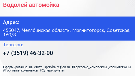 Водолей, автомойка по адресу 455047, Челябинская область, Магнитогорск, Советская, 160/3 в дальнейшем Организация, размещена в следующих категориях:
