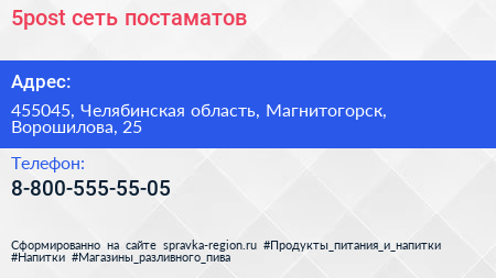 5post, сеть постаматов по адресу 455045, Челябинская область, Магнитогорск, Ворошилова, 25 в дальнейшем Организация, размещена в следующих категориях: