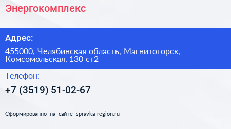 Энергокомплекс по адресу 455000, Челябинская область, Магнитогорск, Комсомольская, 130 ст2 в дальнейшем Организация, размещена в следующих категориях: