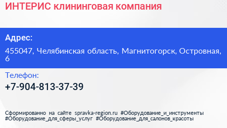 ИНТЕРИС, клининговая компания по адресу 455047, Челябинская область, Магнитогорск, Островная, 6 в дальнейшем Организация, размещена в следующих категориях: