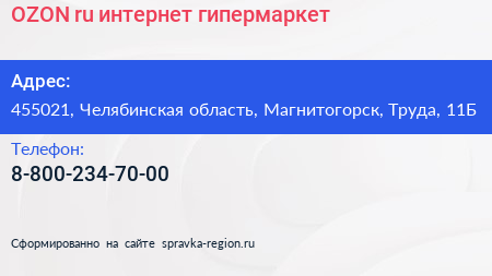 OZON.ru, интернет-гипермаркет по адресу 455021, Челябинская область, Магнитогорск, Труда, 11Б в дальнейшем Организация, размещена в следующих категориях:
