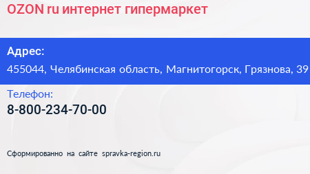 OZON.ru, интернет-гипермаркет по адресу 455044, Челябинская область, Магнитогорск, Грязнова, 39 в дальнейшем Организация, размещена в следующих категориях:
