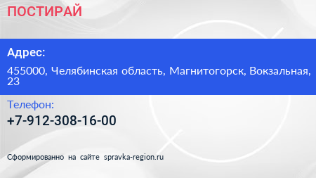 ПОСТИРАЙ по адресу 455000, Челябинская область, Магнитогорск, Вокзальная, 23 в дальнейшем Организация, размещена в следующих категориях: