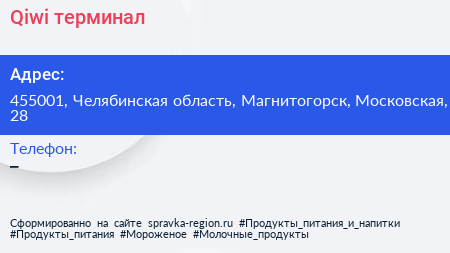Qiwi, терминал по адресу 455001, Челябинская область, Магнитогорск, Московская, 28 в дальнейшем Организация, размещена в следующих категориях:
