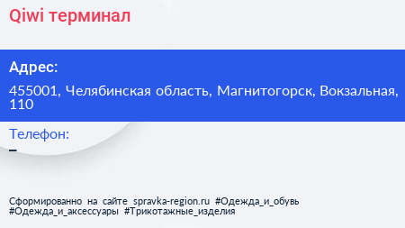 Qiwi, терминал по адресу 455001, Челябинская область, Магнитогорск, Вокзальная, 110 в дальнейшем Организация, размещена в следующих категориях: