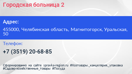 Городская больница №2 по адресу 455000, Челябинская область, Магнитогорск, Уральская, 50 в дальнейшем Организация, размещена в следующих категориях:
