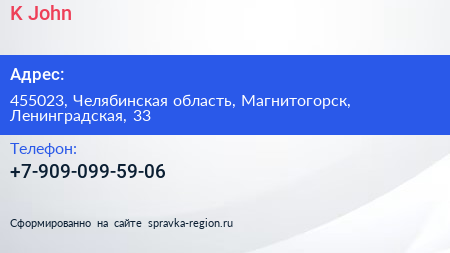 K.John по адресу 455023, Челябинская область, Магнитогорск, Ленинградская, 33 в дальнейшем Организация, размещена в следующих категориях: