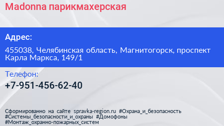 Madonna, парикмахерская по адресу 455038, Челябинская область, Магнитогорск, проспект Карла Маркса, 149/1 в дальнейшем Организация, размещена в следующих категориях:
