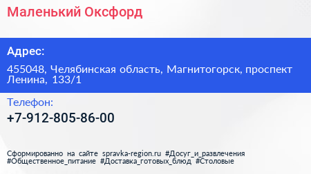 Маленький Оксфорд по адресу 455048, Челябинская область, Магнитогорск, проспект Ленина, 133/1 в дальнейшем Организация, размещена в следующих категориях: