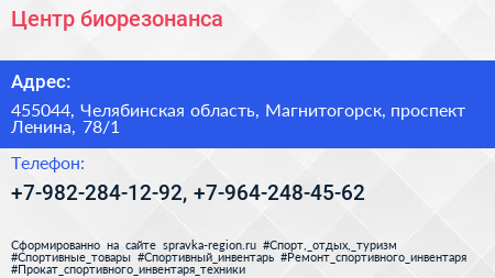 Центр биорезонанса по адресу 455044, Челябинская область, Магнитогорск, проспект Ленина, 78/1 в дальнейшем Организация, размещена в следующих категориях:
