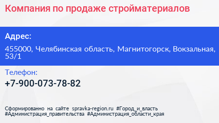 Компания по продаже стройматериалов по адресу 455000, Челябинская область, Магнитогорск, Вокзальная, 53/1 в дальнейшем Организация, размещена в следующих категориях: