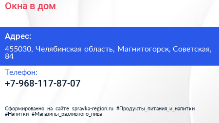 Окна в дом по адресу 455030, Челябинская область, Магнитогорск, Советская, 84 в дальнейшем Организация, размещена в следующих категориях: