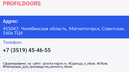 PROFILDOORS по адресу 455047, Челябинская область, Магнитогорск, Советская, 160а ТЦ4 в дальнейшем Организация, размещена в следующих категориях: