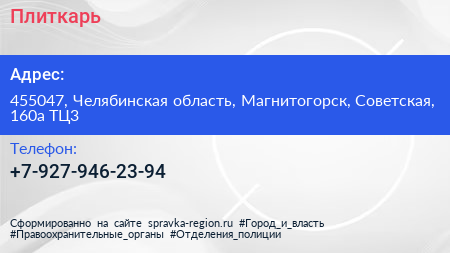 Плиткарь по адресу 455047, Челябинская область, Магнитогорск, Советская, 160а ТЦ3 в дальнейшем Организация, размещена в следующих категориях: