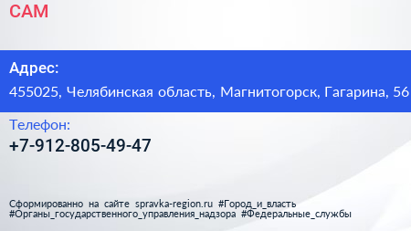 САМ по адресу 455025, Челябинская область, Магнитогорск, Гагарина, 56 в дальнейшем Организация, размещена в следующих категориях: