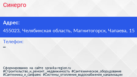 Синерго по адресу 455023, Челябинская область, Магнитогорск, Чапаева, 15 в дальнейшем Организация, размещена в следующих категориях: