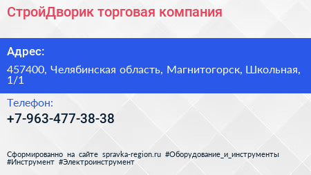 СтройДворик, торговая компания по адресу 457400, Челябинская область, Магнитогорск, Школьная, 1/1 в дальнейшем Организация, размещена в следующих категориях:
