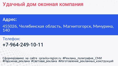 Удачный дом, оконная компания по адресу 455026, Челябинская область, Магнитогорск, Мичурина, 140 в дальнейшем Организация, размещена в следующих категориях: