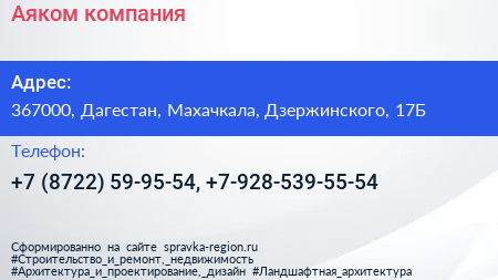 Аяком, компания по адресу 367000, Дагестан, Махачкала, Дзержинского, 17Б в дальнейшем Организация, размещена в следующих категориях: