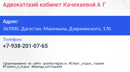 Адвокатский кабинет Качекаевой А.Г. по адресу 367000, Дагестан, Махачкала, Дзержинского, 17Б в дальнейшем Организация, размещена в следующих категориях: