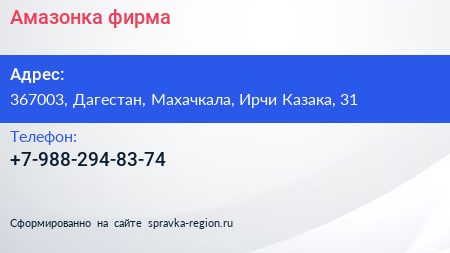 Амазонка, фирма по адресу 367003, Дагестан, Махачкала, Ирчи Казака, 31 в дальнейшем Организация, размещена в следующих категориях: