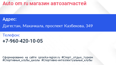 Auto-om.ru, магазин автозапчастей по адресу Дагестан, Махачкала, проспект Казбекова, 349 в дальнейшем Организация, размещена в следующих категориях: